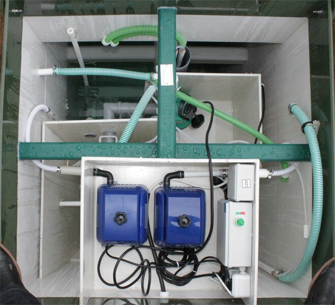 Септик Топас 150 Пр можно считать комплексом, так как она двухкорпусная с распределительной емкостью. Размеры каждого корпуса одинаковы и напоминают станцию Топас 75 Пр. Автономная канализация Топас 150 Пр подходит при условии выполнения следующих параметров: Где количество постоянных пользователей не должно превышать ста пятидесяти человек; Подводящая труба варьируется в диапазоне от 760 до 1260 мм от нулевой отметки земли. Как и любая принудительная станция идеально подходит для плохих грунтов. На выброс очищенной воды срабатывают два насоса, каждый из которых расположен в отдельном блоке. Весь комплекс монтируется на бетонное основание в котлован и по периметру обсыпается песком. Может работать при установки задвижки в половину мощности, что наиболее актуально на объектах с варьирующейся периодической загрузкой. Залповый сброс в обе приемные камеры емкости составляет по 2250 литров, что в совокупности не превышает 4500 литров. Сервис лучше проводить специалистами по регламенту указанному в техническом паспорте на продукцию. По всем вопросам вы можете получить квалифицированную информацию позвонив по телефону 967 5966134.